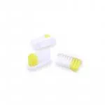 Fremstillet i Frankrig, tandbørstehåndtaget i bioplast består af 70 % derivater fra ricinusolie og 30 % plast.